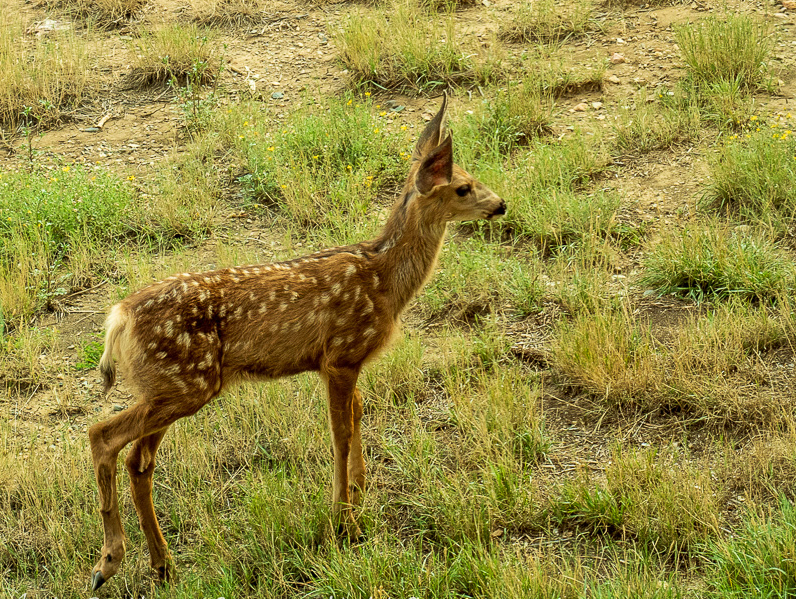 Mule deer fawn, late summer in Alpha